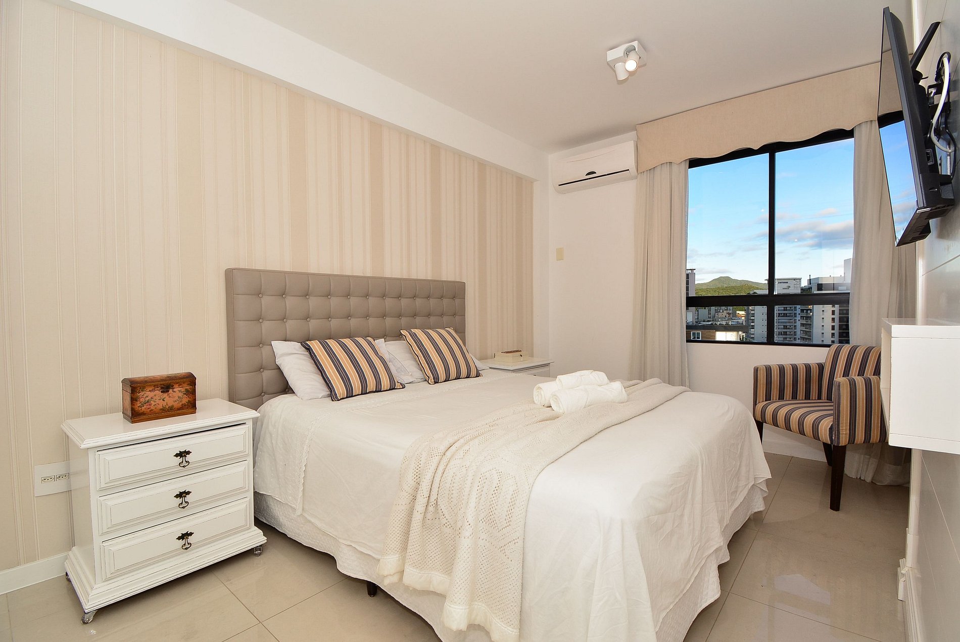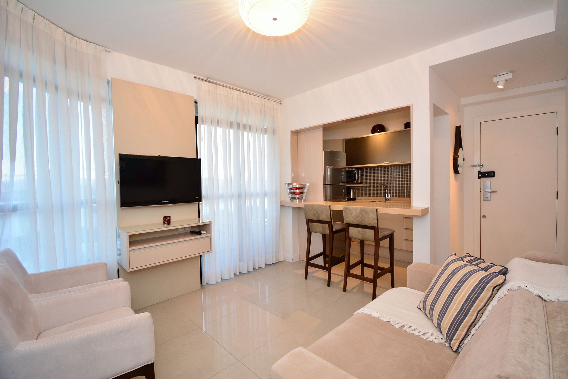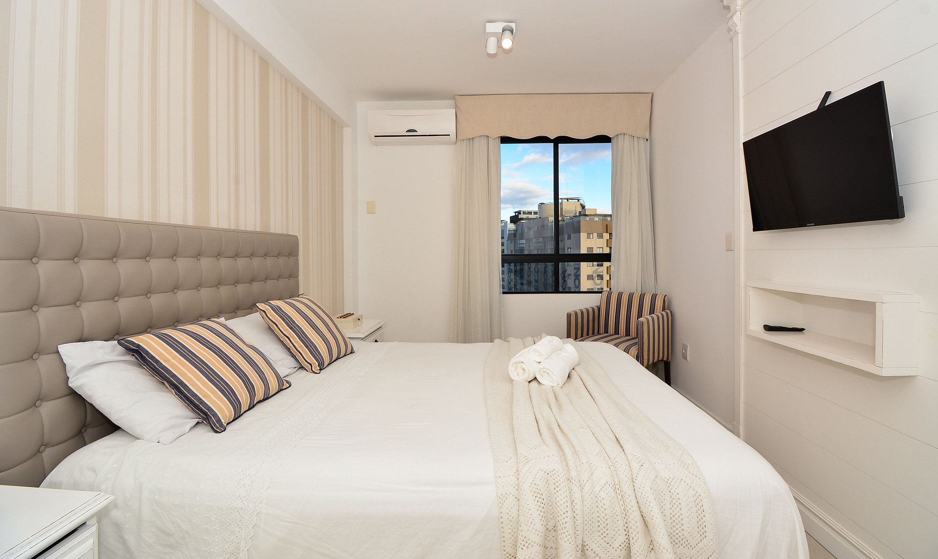 O flat ainda oferece vaga de garagem rotativa, proporcionando mais tranquilidade durante sua estadia.