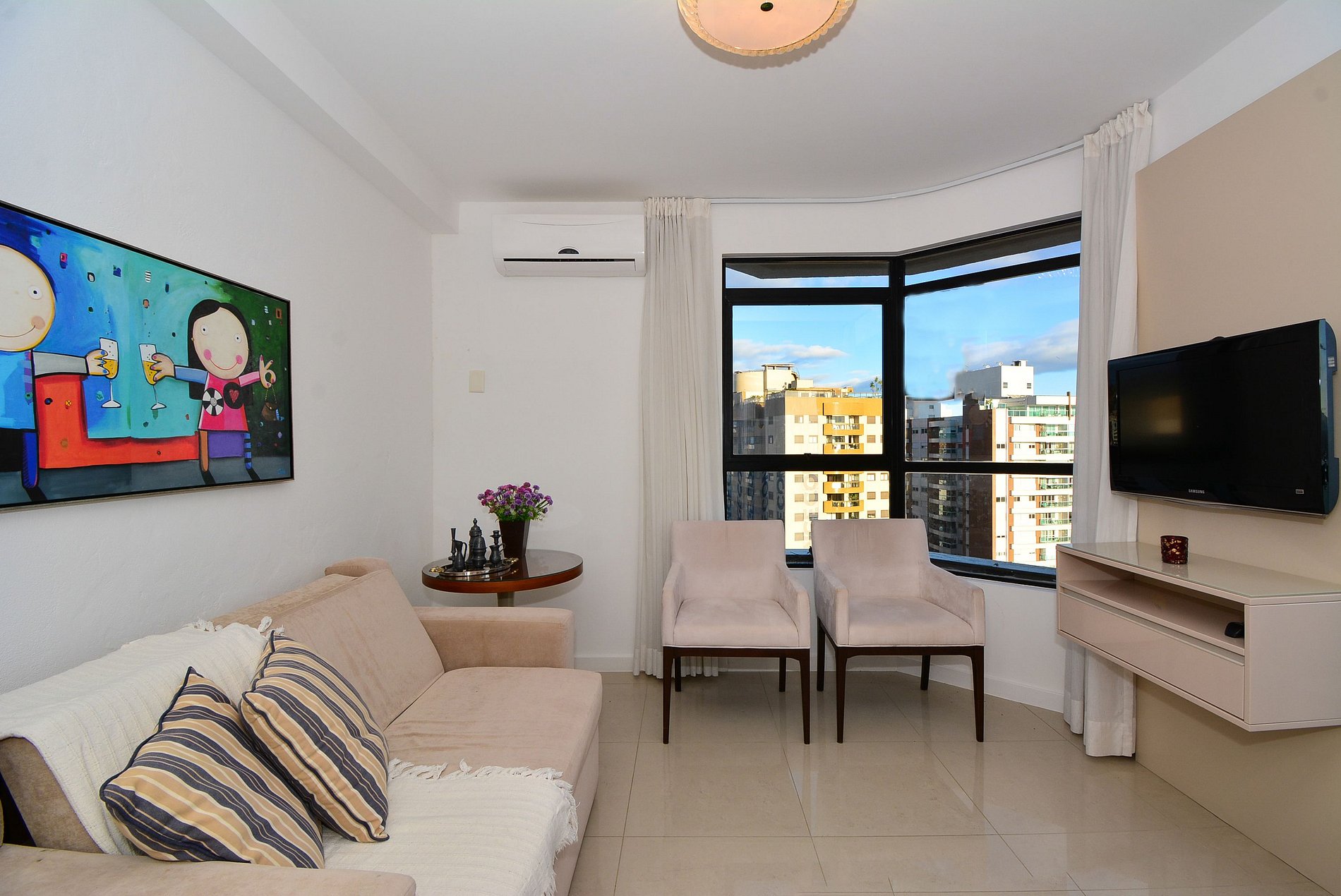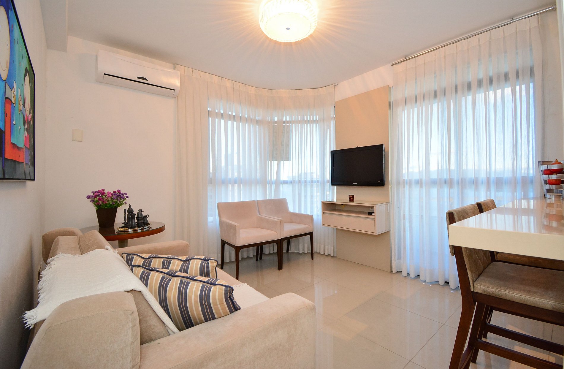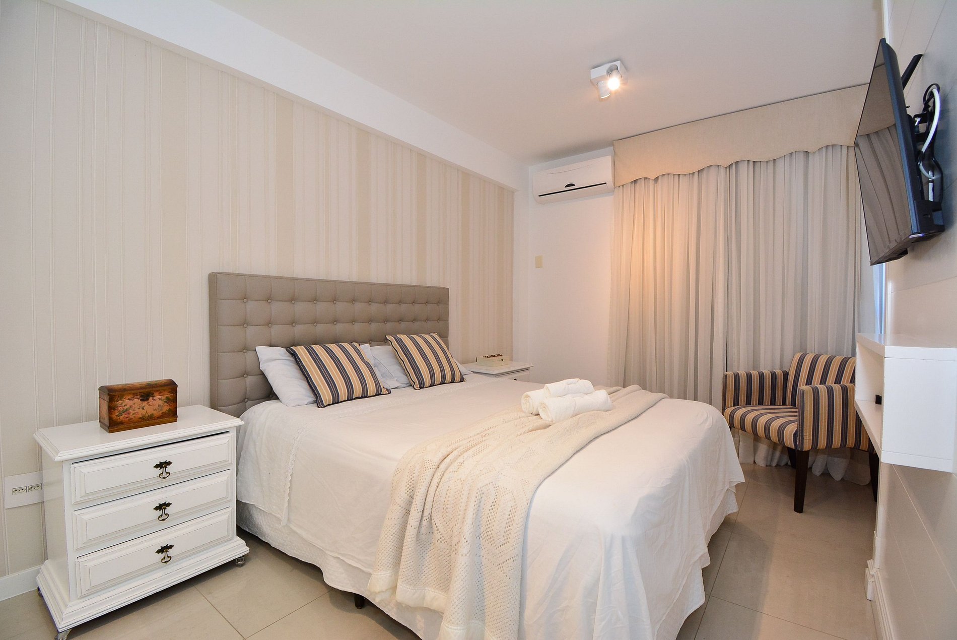 O flat ainda oferece vaga de garagem rotativa, proporcionando mais tranquilidade durante sua estadia.
