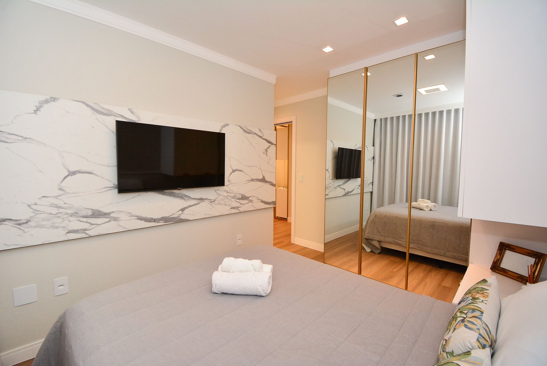 Decorado com sofisticação e conforto em cada detalhe, o imóvel dispõe de duas suítes amplas: uma com cama de casal e outra com cama queen, acomodando confortavelmente até 4 pessoas.