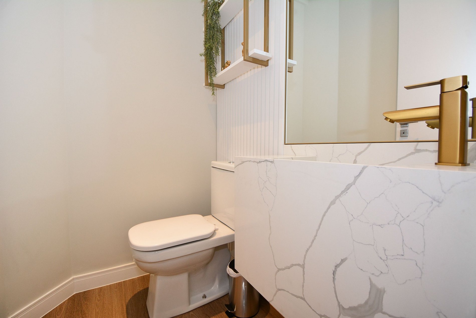 O apartamento oferece também uma lavanderia completa e um lavabo adicional, proporcionando ainda mais conveniência para os hóspedes.