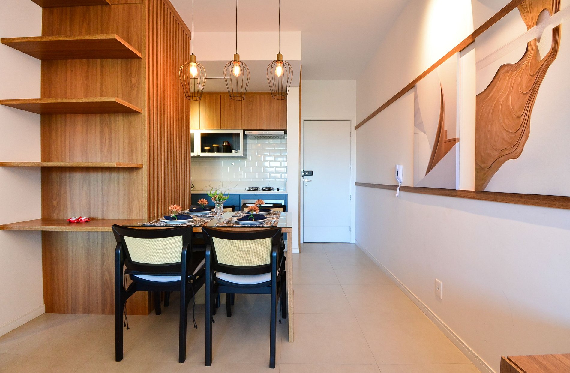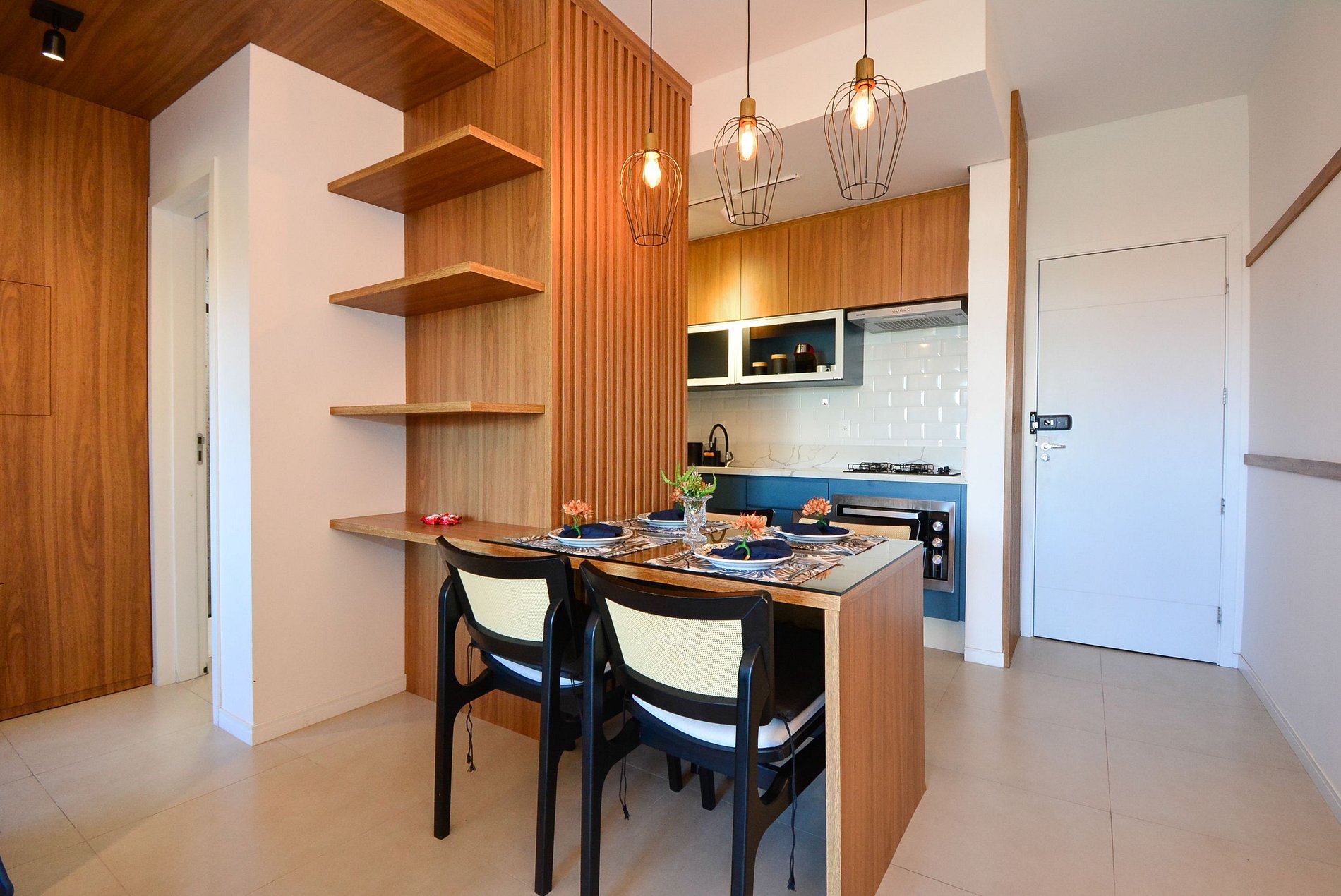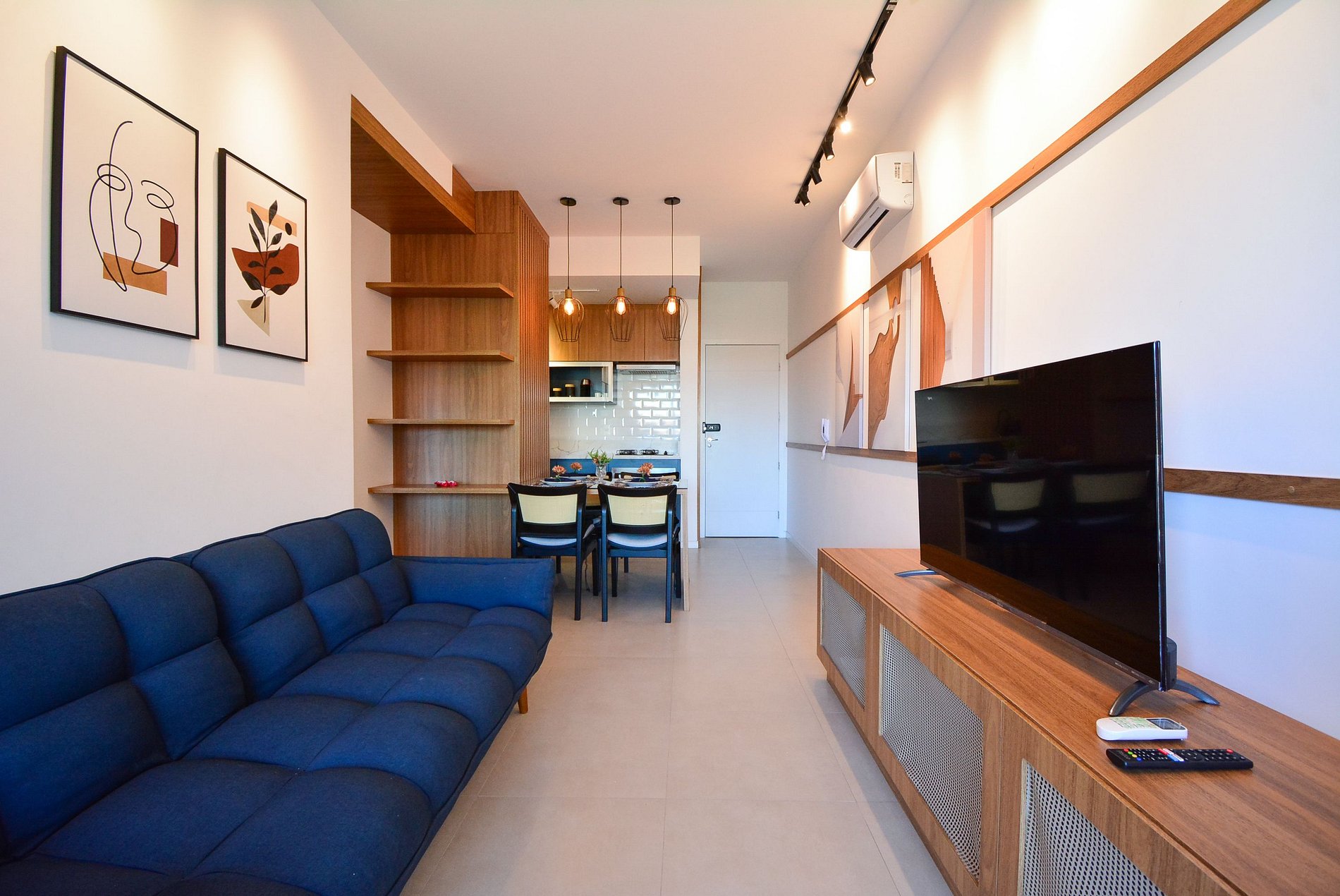 Totalmente mobiliado, o apartamento inclui ar-condicionado, Smart TV e uma cozinha completa com todos os utensílios necessários para preparar suas refeições.