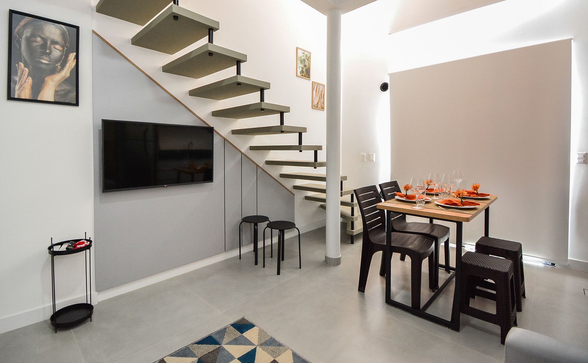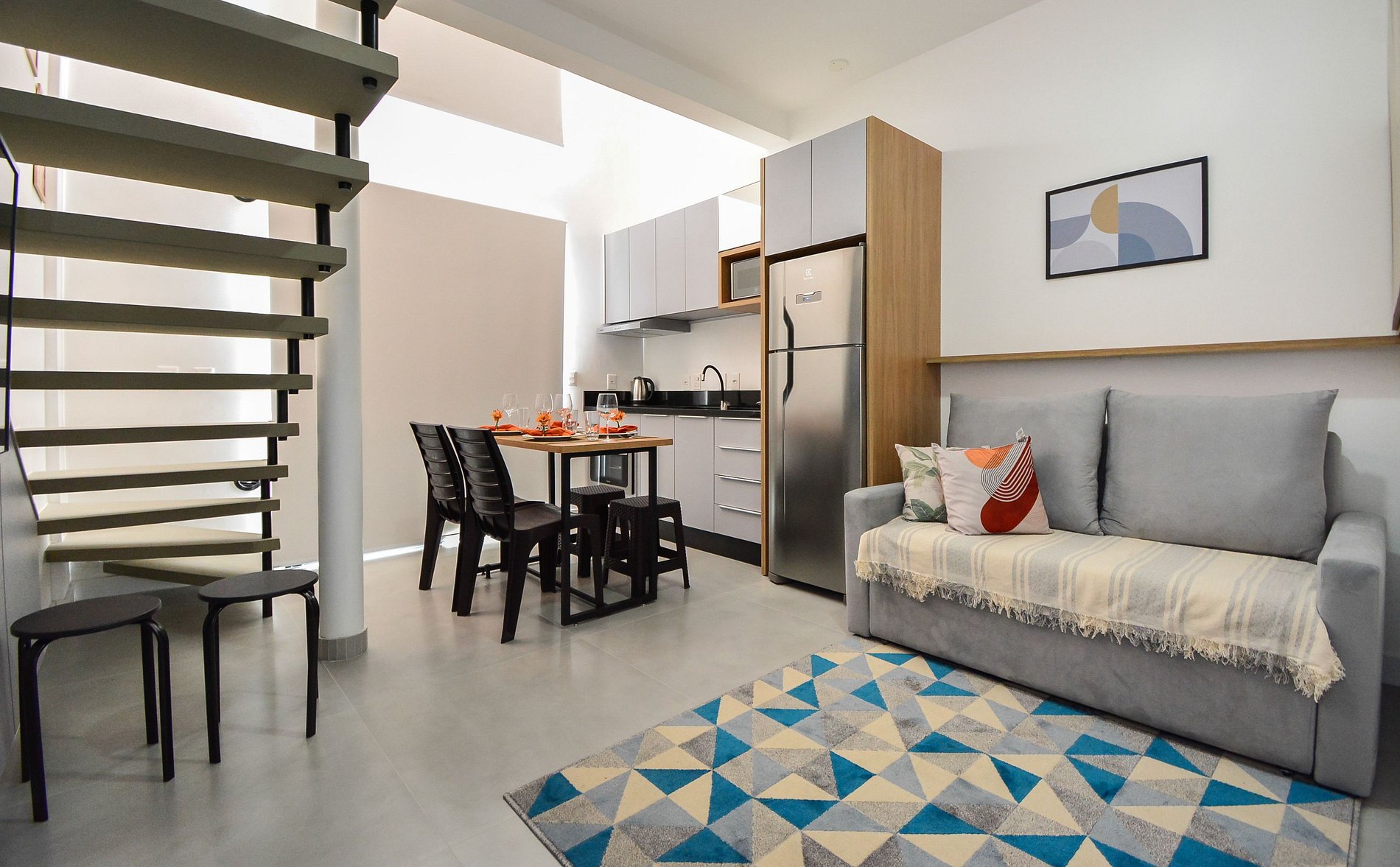 O loft acomoda confortavelmente até 4 pessoas, oferecendo um ambiente aconchegante e bem planejado.