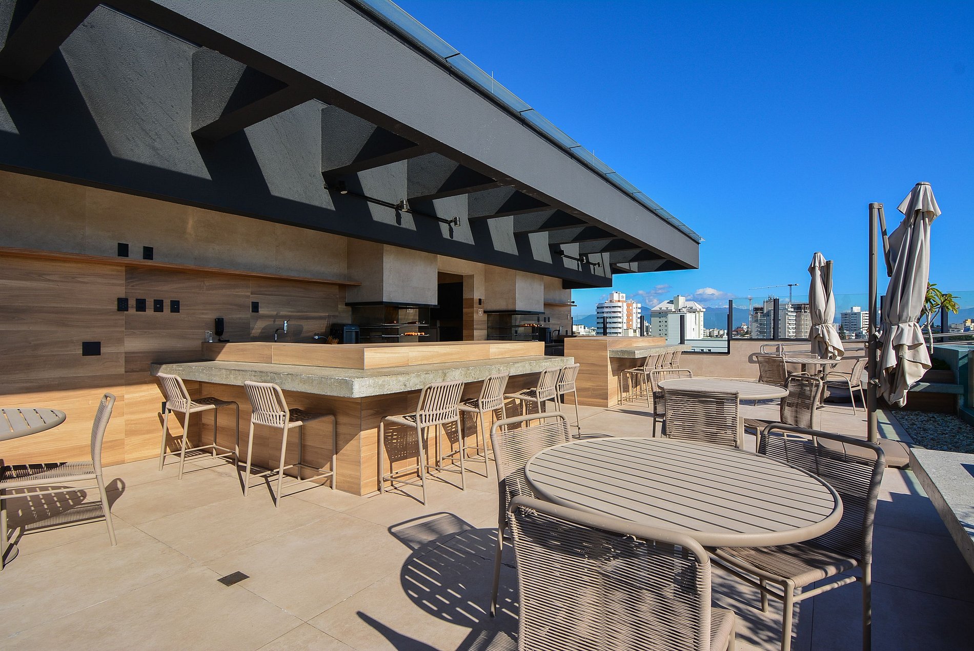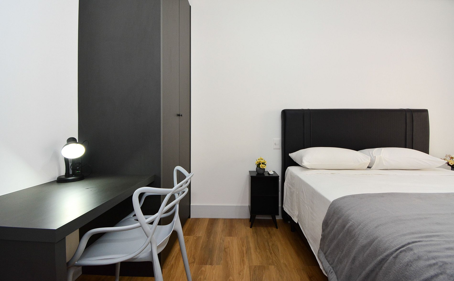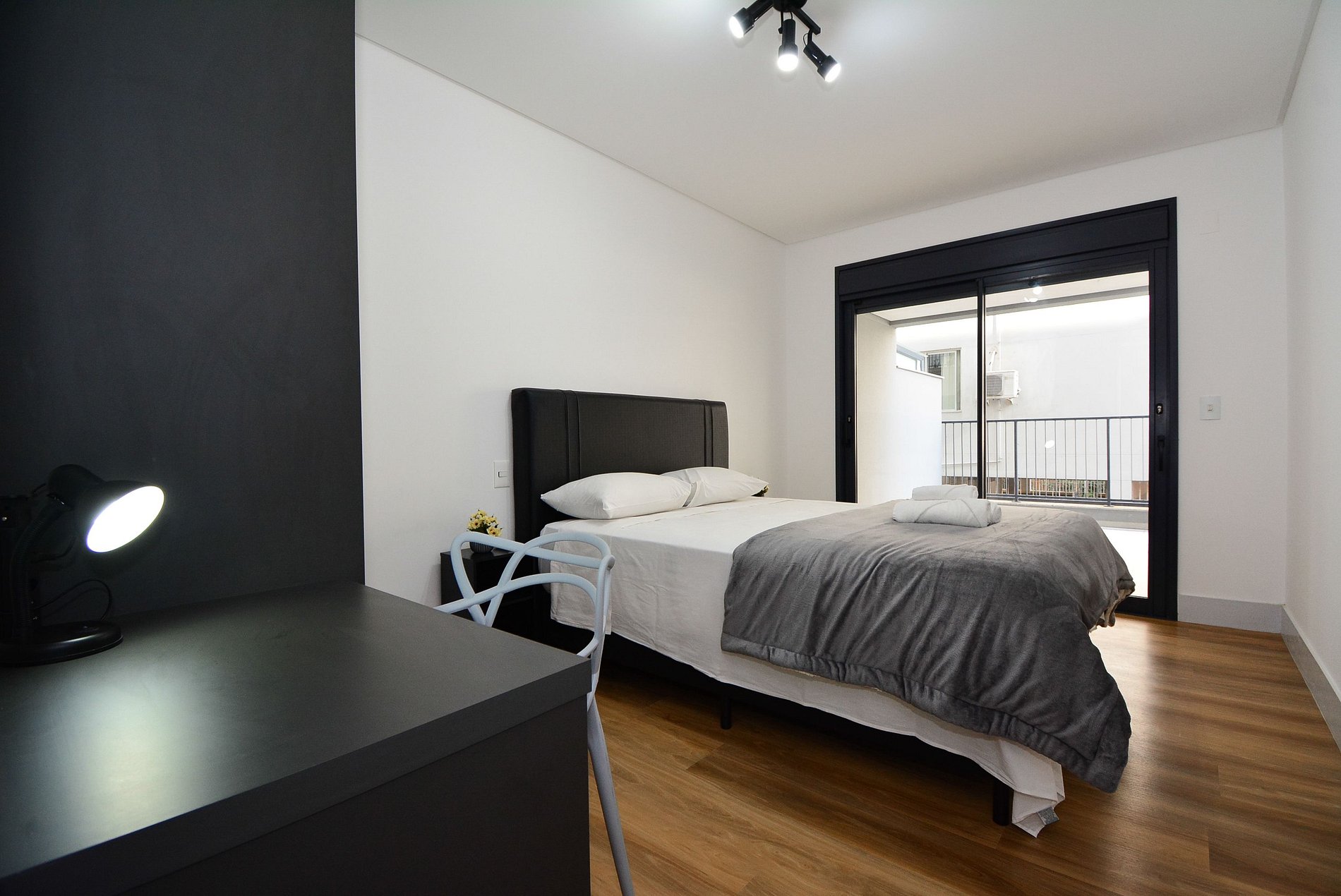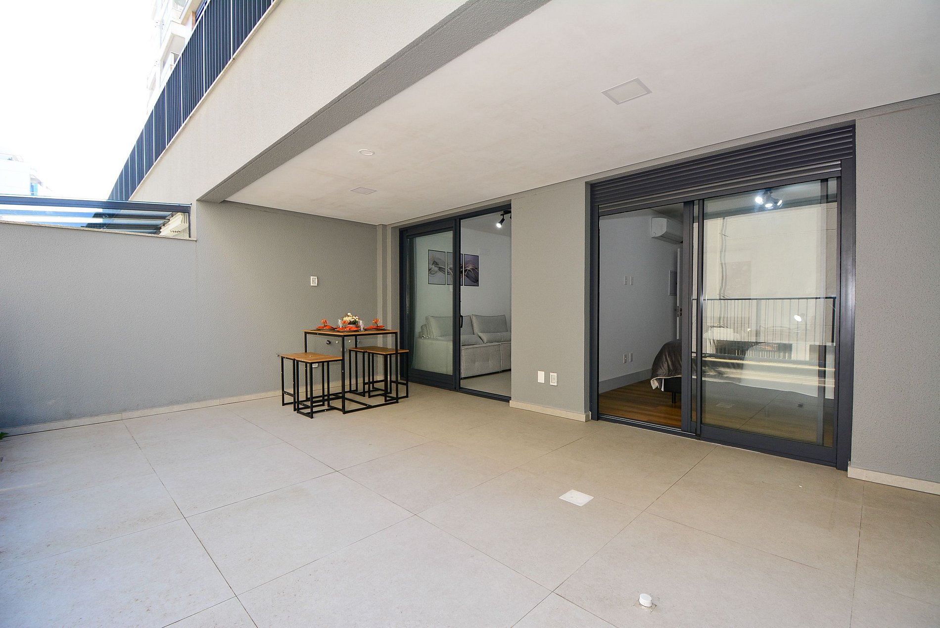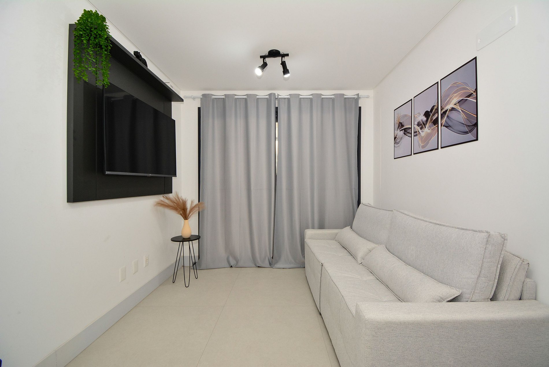 A decoração é moderna e funcional, com uma ampla sacada equipada com mesa, ideal para momentos de confraternização. O espaço é bem distribuído, integrando sala, cozinha e varanda de forma fluida, proporcionando uma experiência acolhedora tanto para lazer quanto para trabalho remoto.