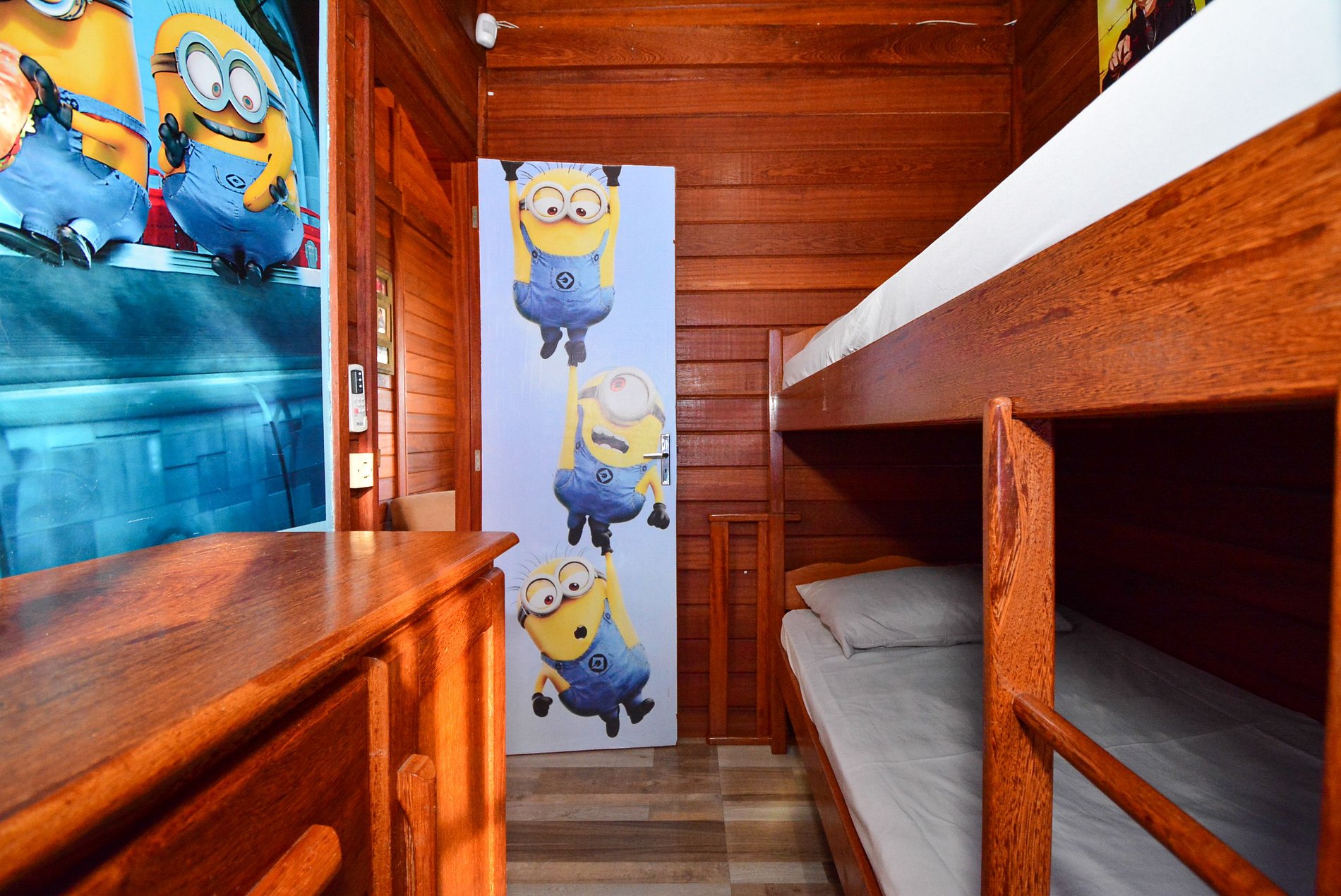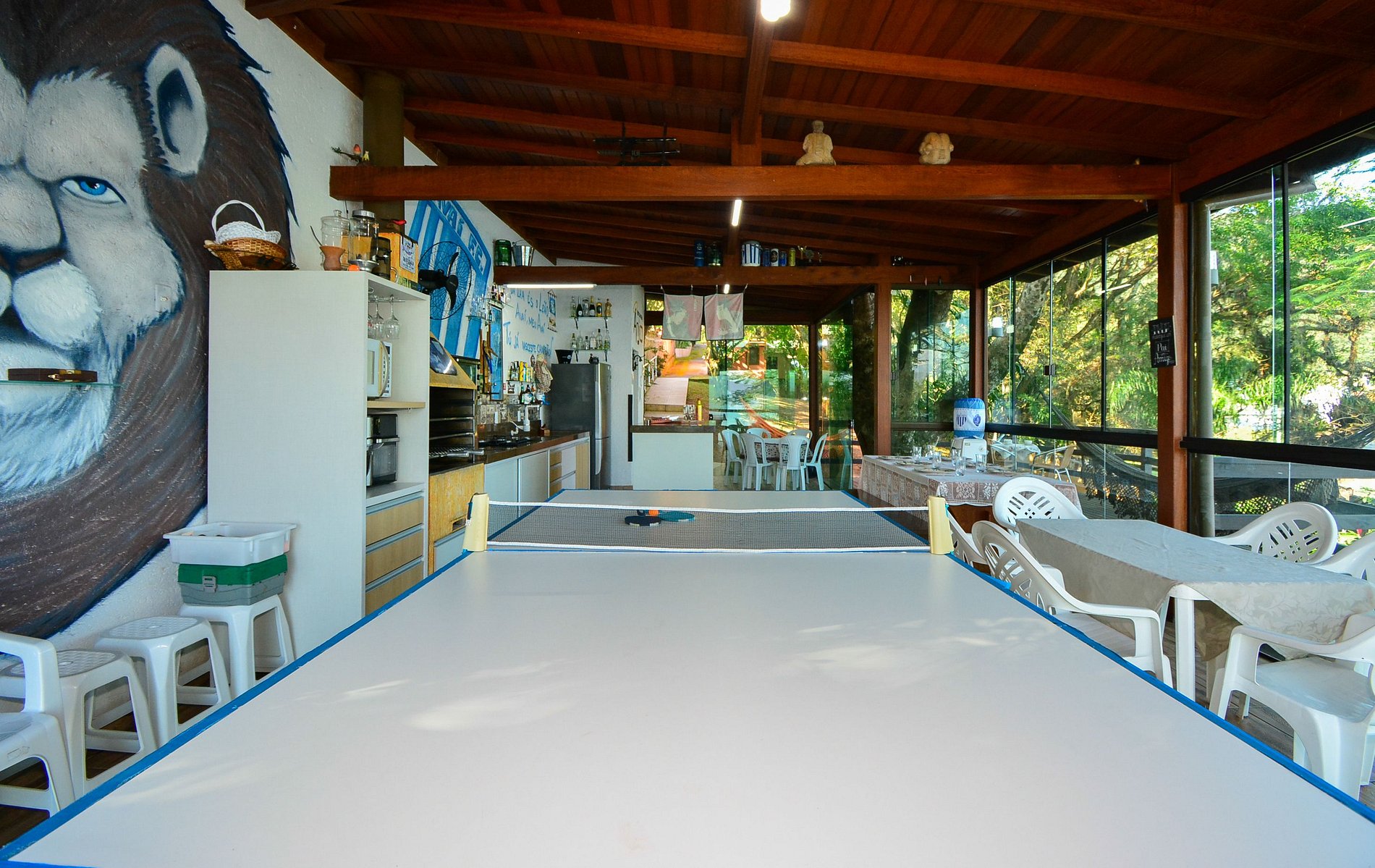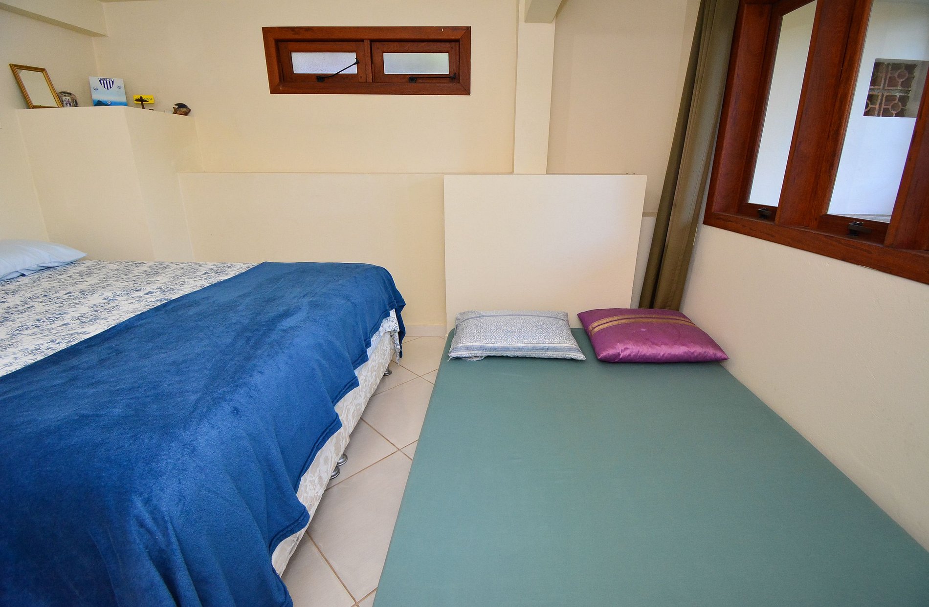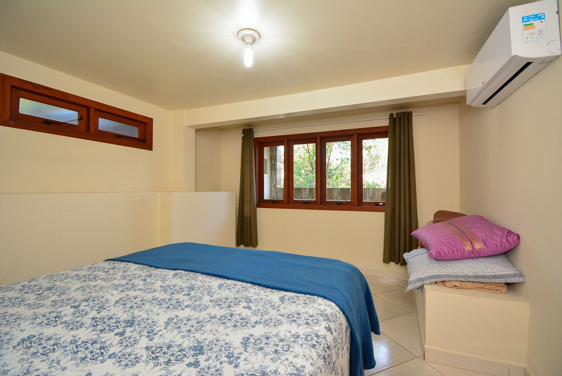 A casa principal acomoda confortavelmente até 12 pessoas, com 3 quartos climatizados (um com cama queen, outro com duas beliches de casal e um com beliche de solteiro, todos com ar condicionado quente e frio), além de um anexo com mais um quarto com cama queen e colchão extra de casal e ar condicionado.