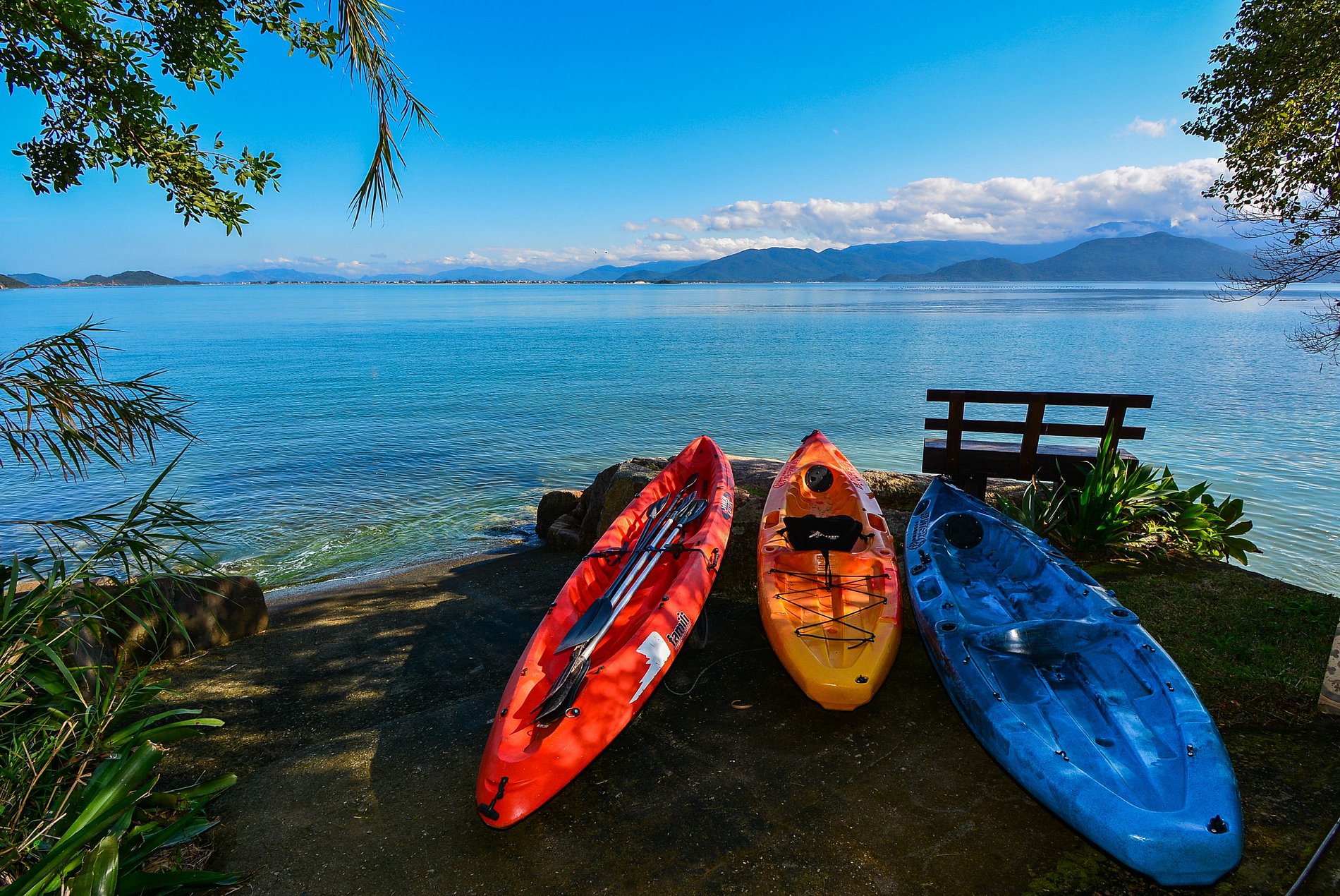 Casa encantadora à beira-mar no Ribeirão da Ilha, com ampla área de lazer, vista deslumbrante para o mar, caiaques à disposição, deck com rede de descanso, churrasqueira e espaço completo para toda a família viver momentos inesquecíveis em Florianópolis.