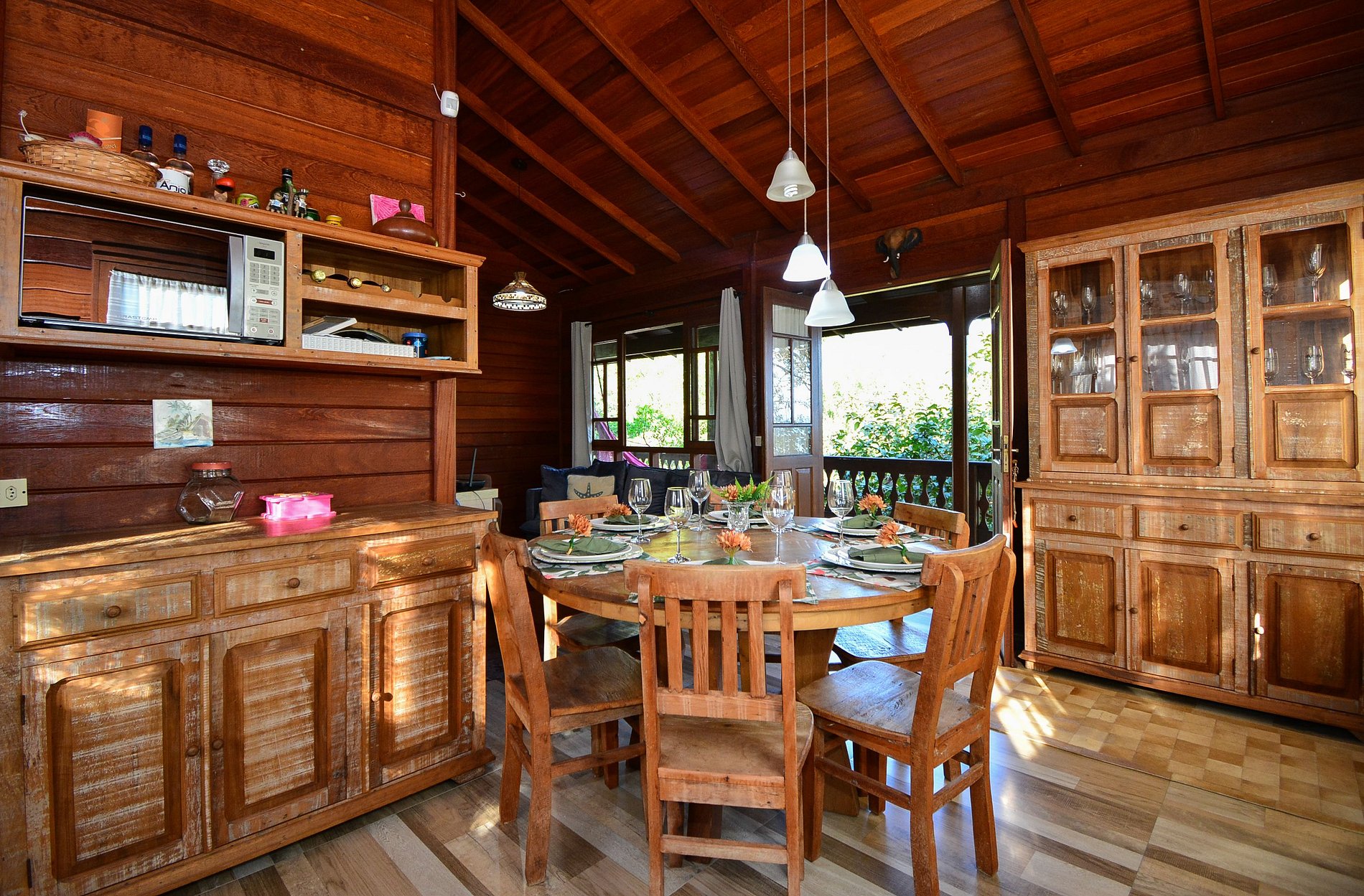 A casa está localizada em um terreno privativo. A área externa oferece muito contato com a natureza, com árvores onde é possível pendurar redes, além de um deck à beira-mar com vista deslumbrante. Ambiente tranquilo e seguro.