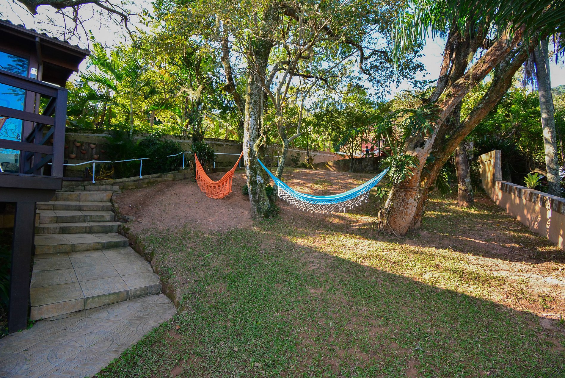 A casa está localizada em um terreno privativo. A área externa oferece muito contato com a natureza, com árvores onde é possível pendurar redes, além de um deck à beira-mar com vista deslumbrante. Ambiente tranquilo e seguro.