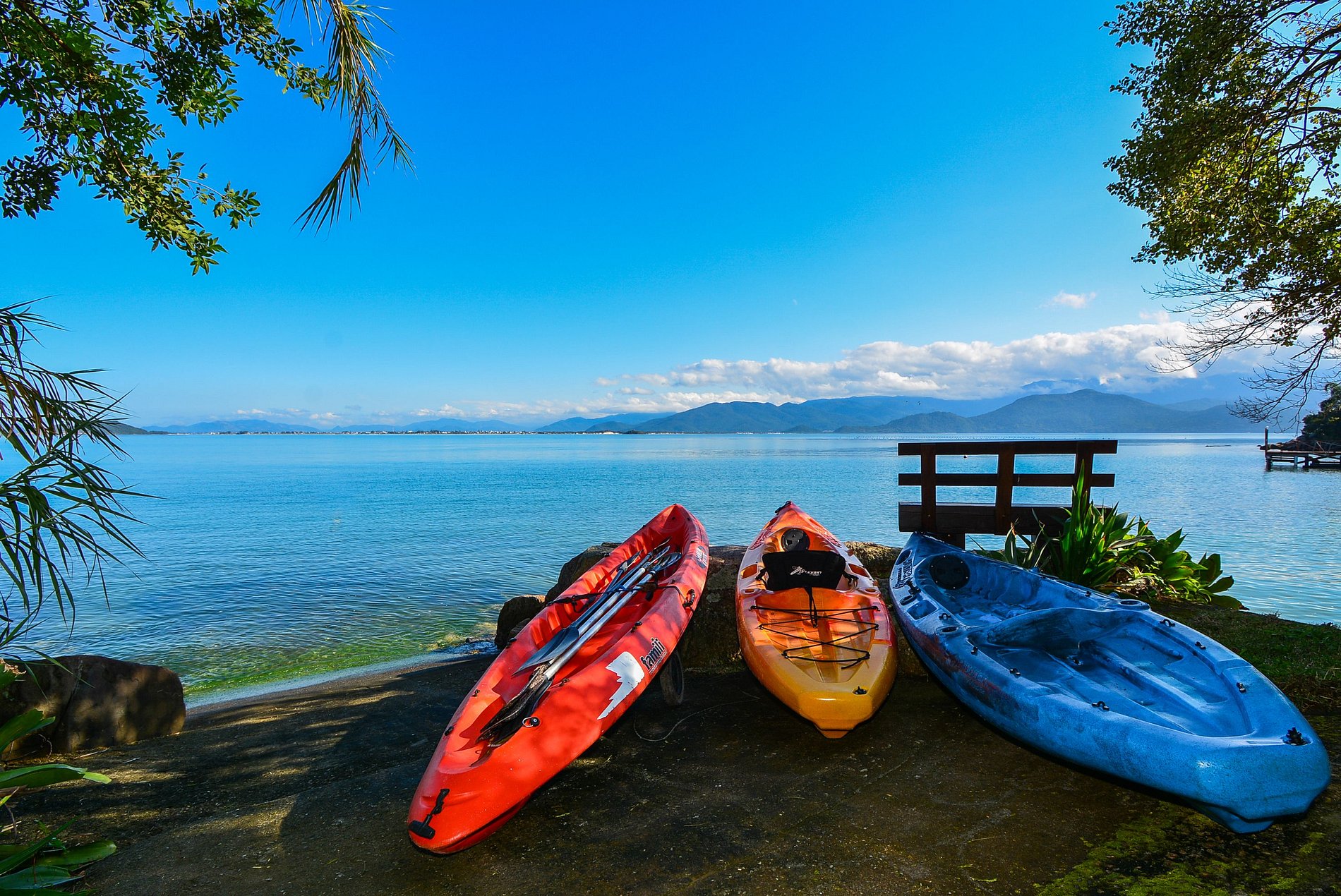 Casa encantadora à beira-mar no Ribeirão da Ilha, com ampla área de lazer, vista deslumbrante para o mar, caiaques à disposição, deck com rede de descanso, churrasqueira e espaço completo para toda a família viver momentos inesquecíveis em Florianópolis.