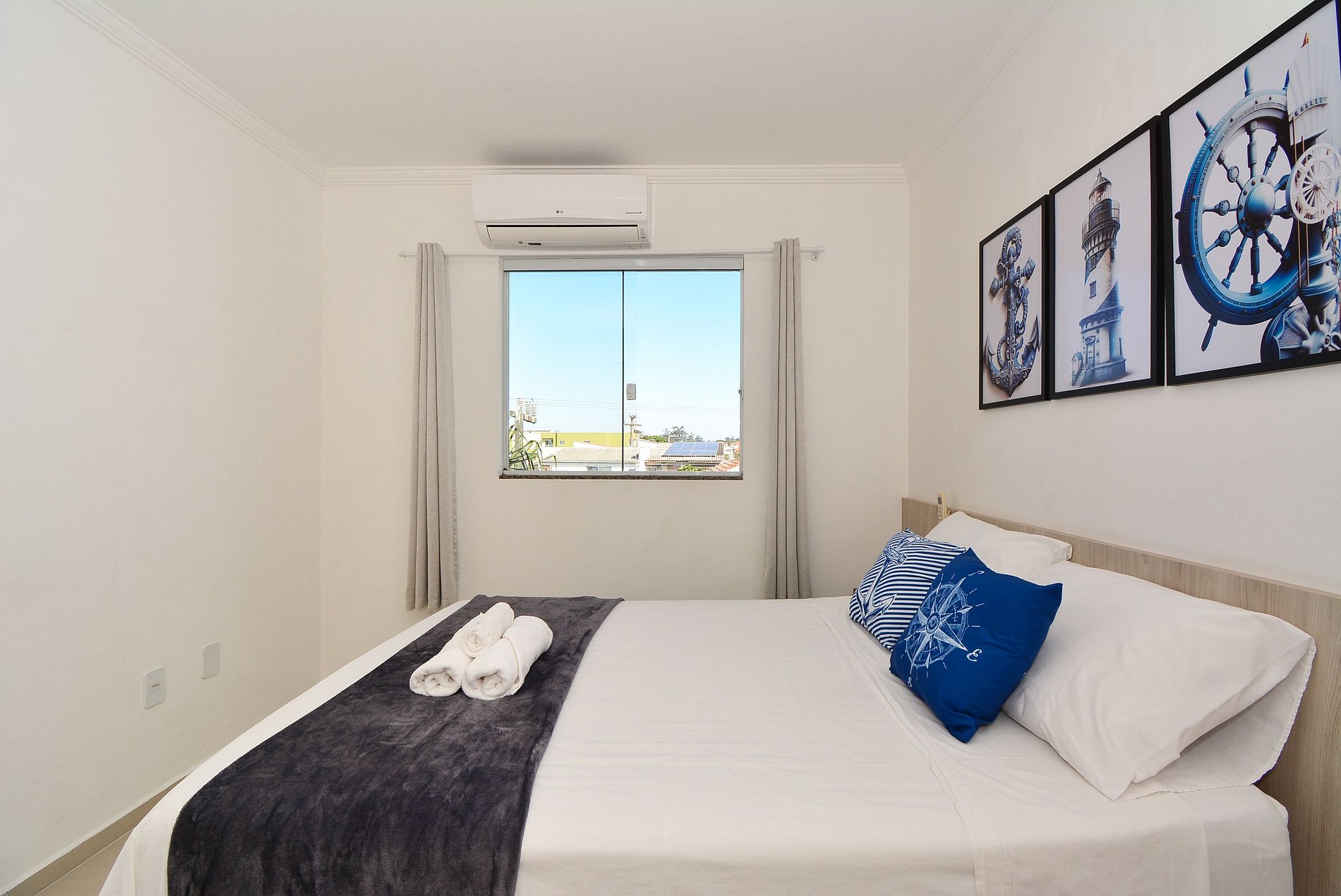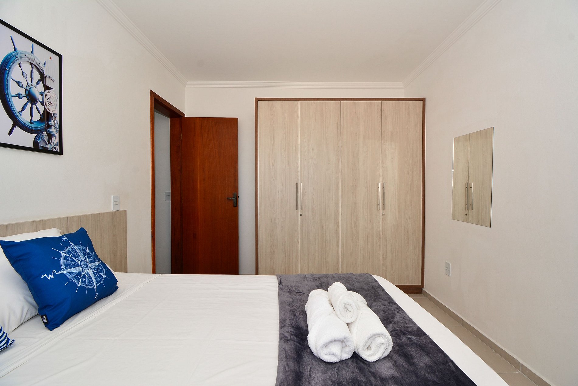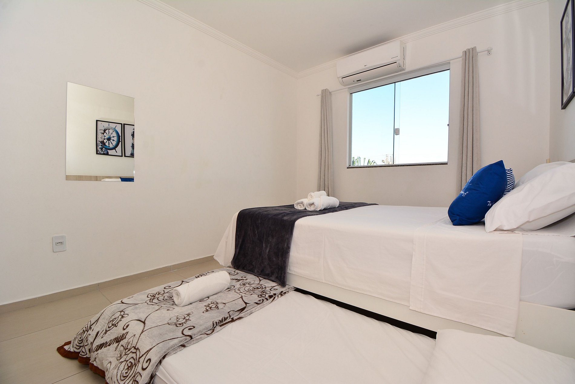 Amplo, bem decorado e aconchegante. Possui dois quartos, sendo uma suíte e cada quarto conta com uma cama de casal e uma cama auxiliar de solteiro. Conta também com um banheiro social.