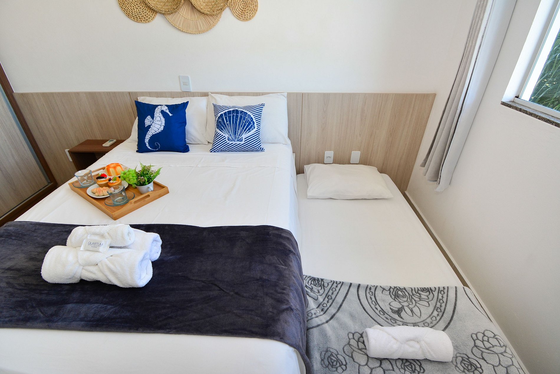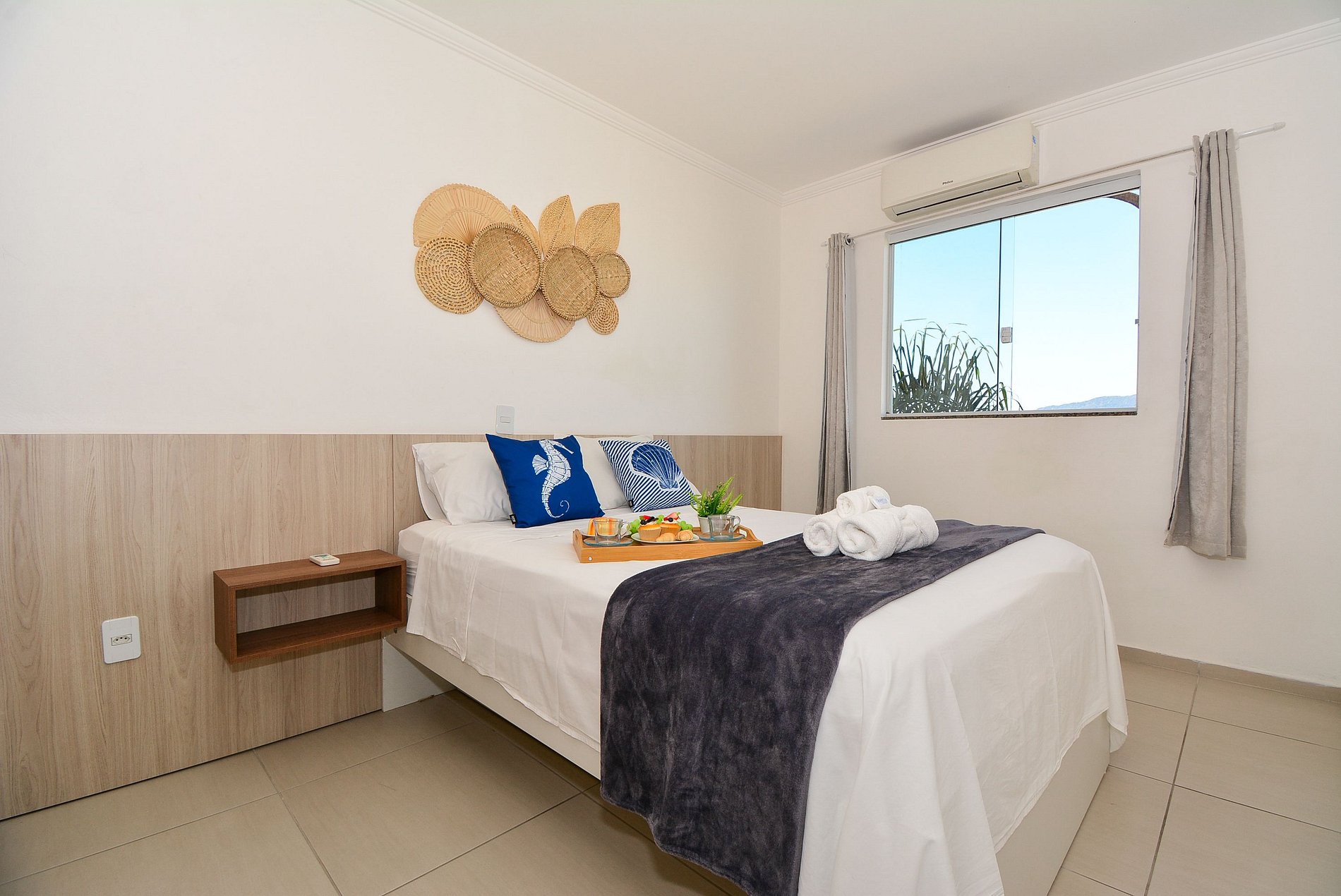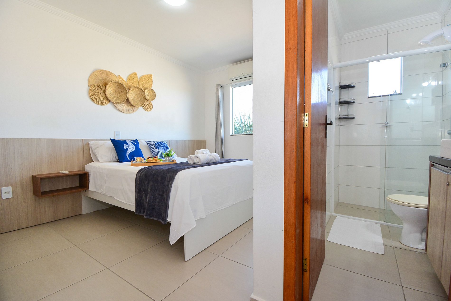 Amplo, bem decorado e aconchegante. Possui dois quartos, sendo uma suíte e cada quarto conta com uma cama de casal e uma cama auxiliar de solteiro. Conta também com um banheiro social.