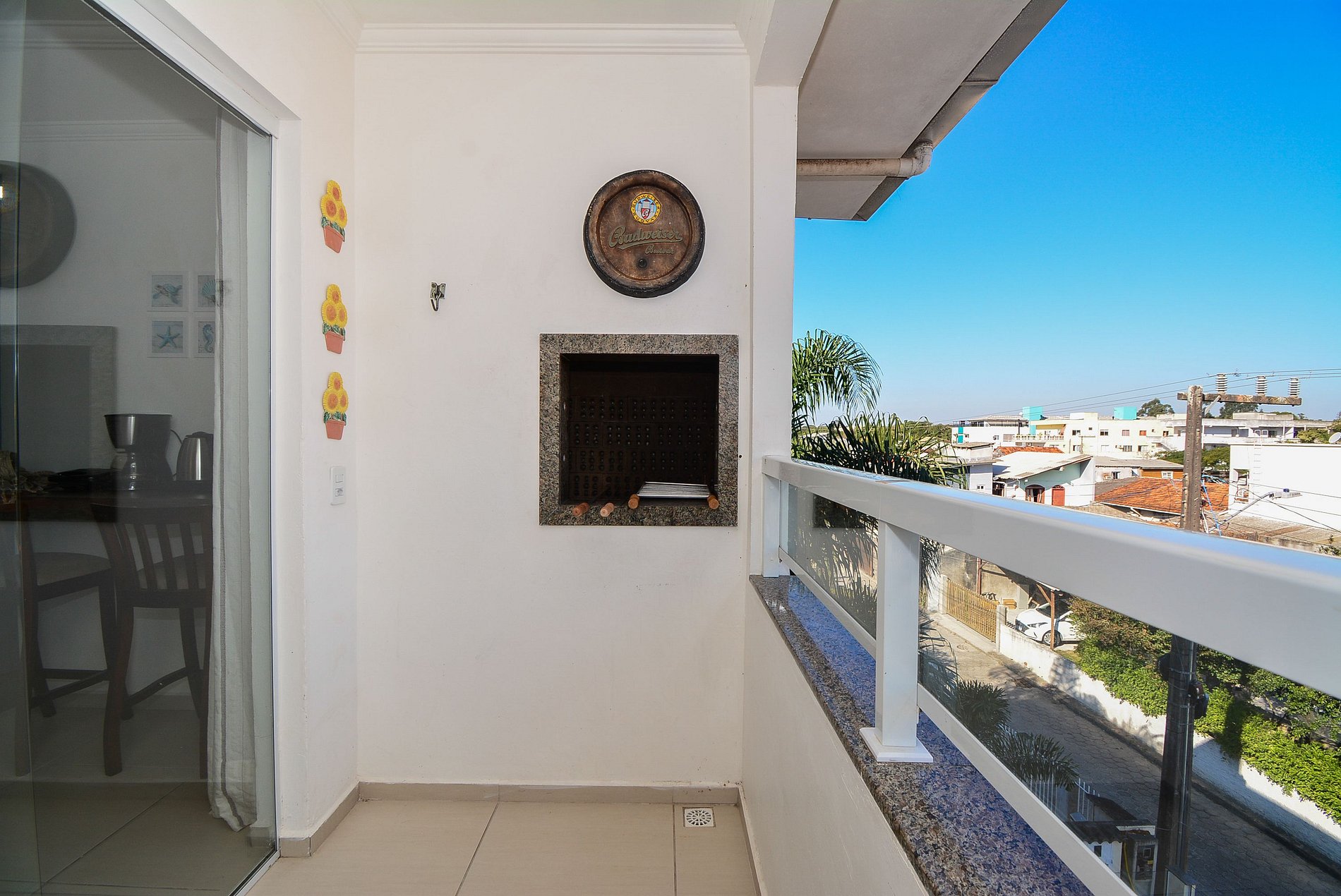 A sacada conta com churrasqueira, além de uma rede de descanso para momentos de relaxamento.