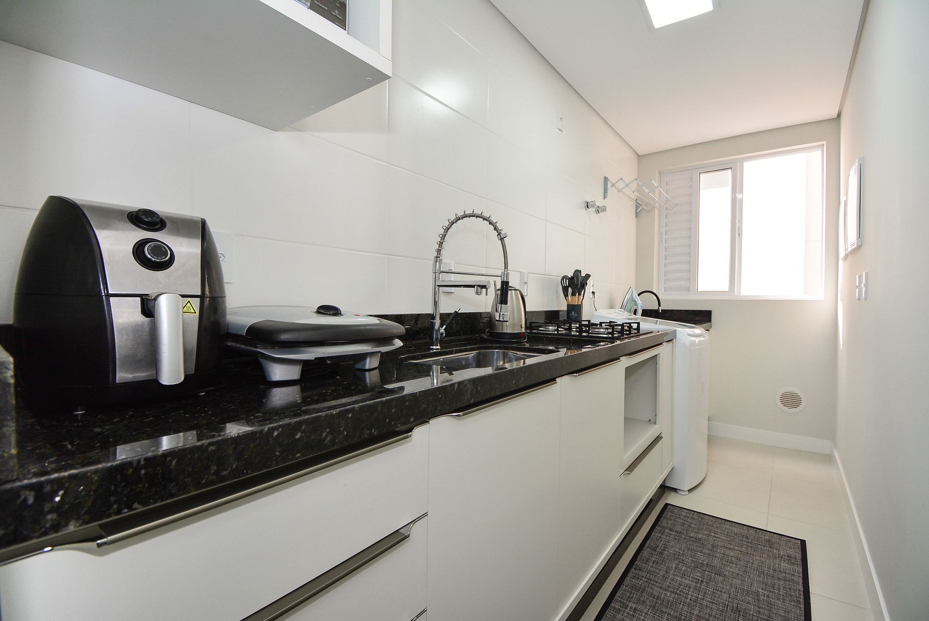 A cozinha é completa e ideal para quem gosta de preparar refeições em casa.