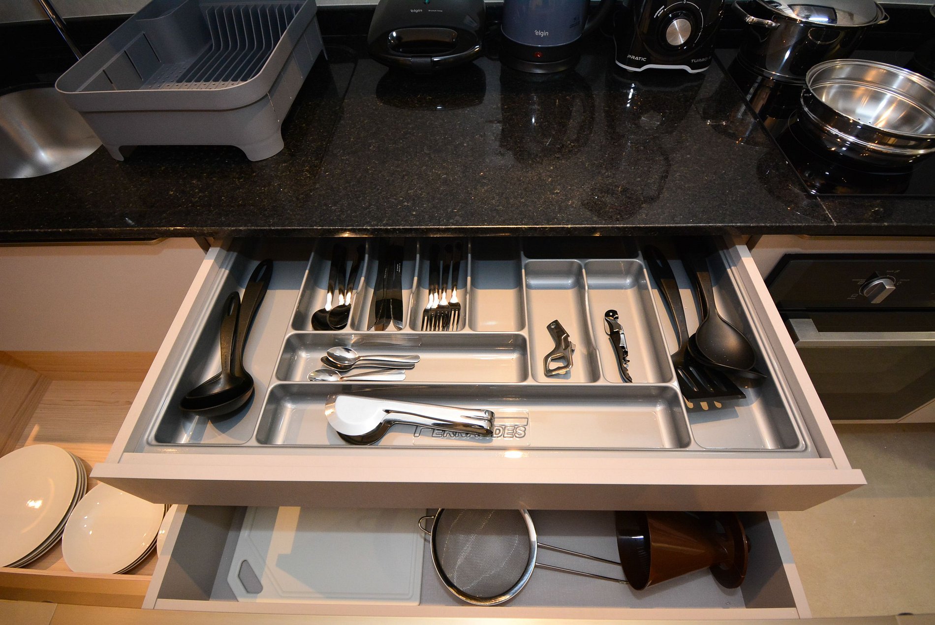 • Cooktop, forno, micro-ondas, geladeira, chaleira elétrica, sanduicheira, liquidificador, panelas variadas.
