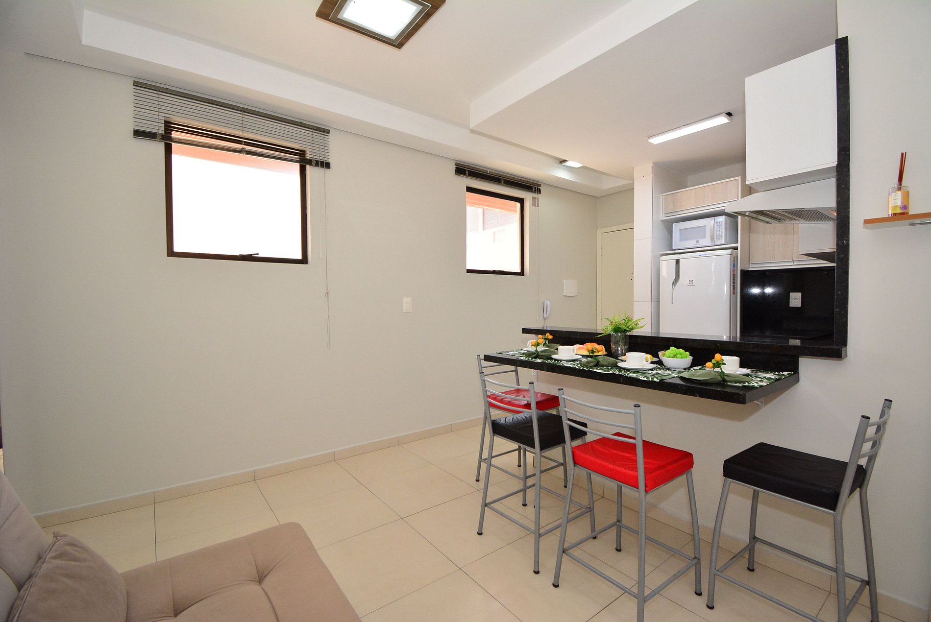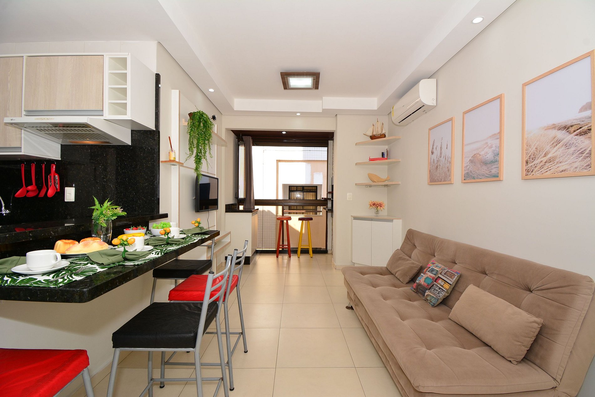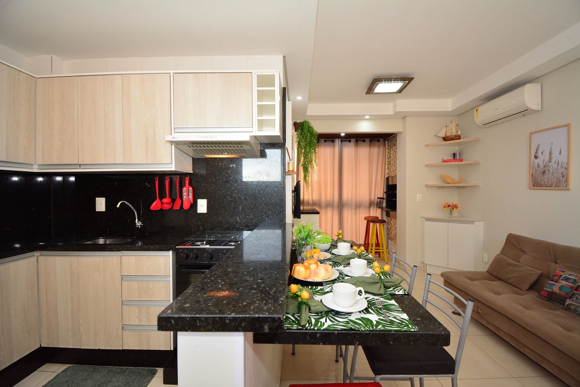 A decoração, simples e harmoniosa, garante praticidade e bem-estar, tornando a estadia leve e agradável.