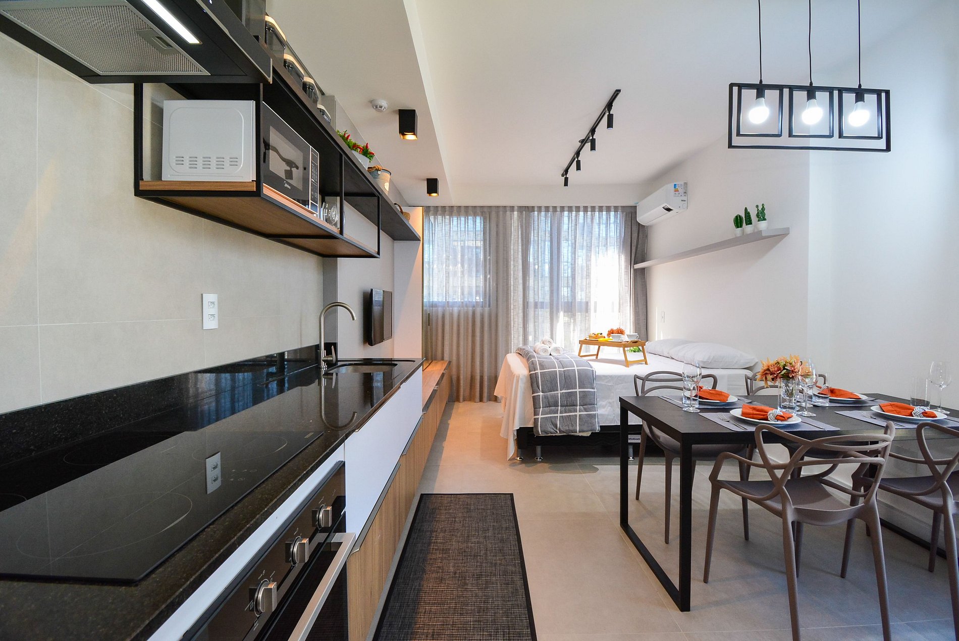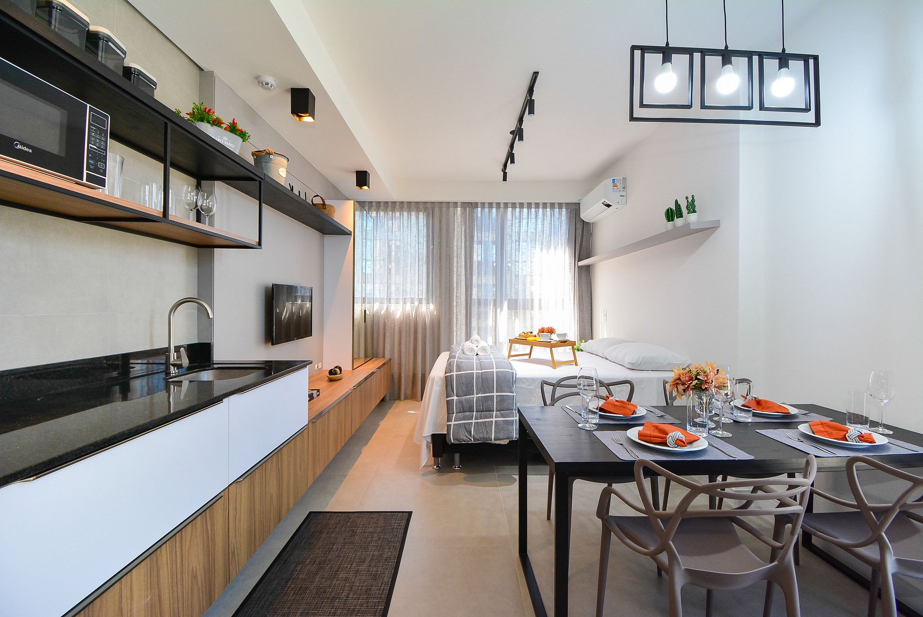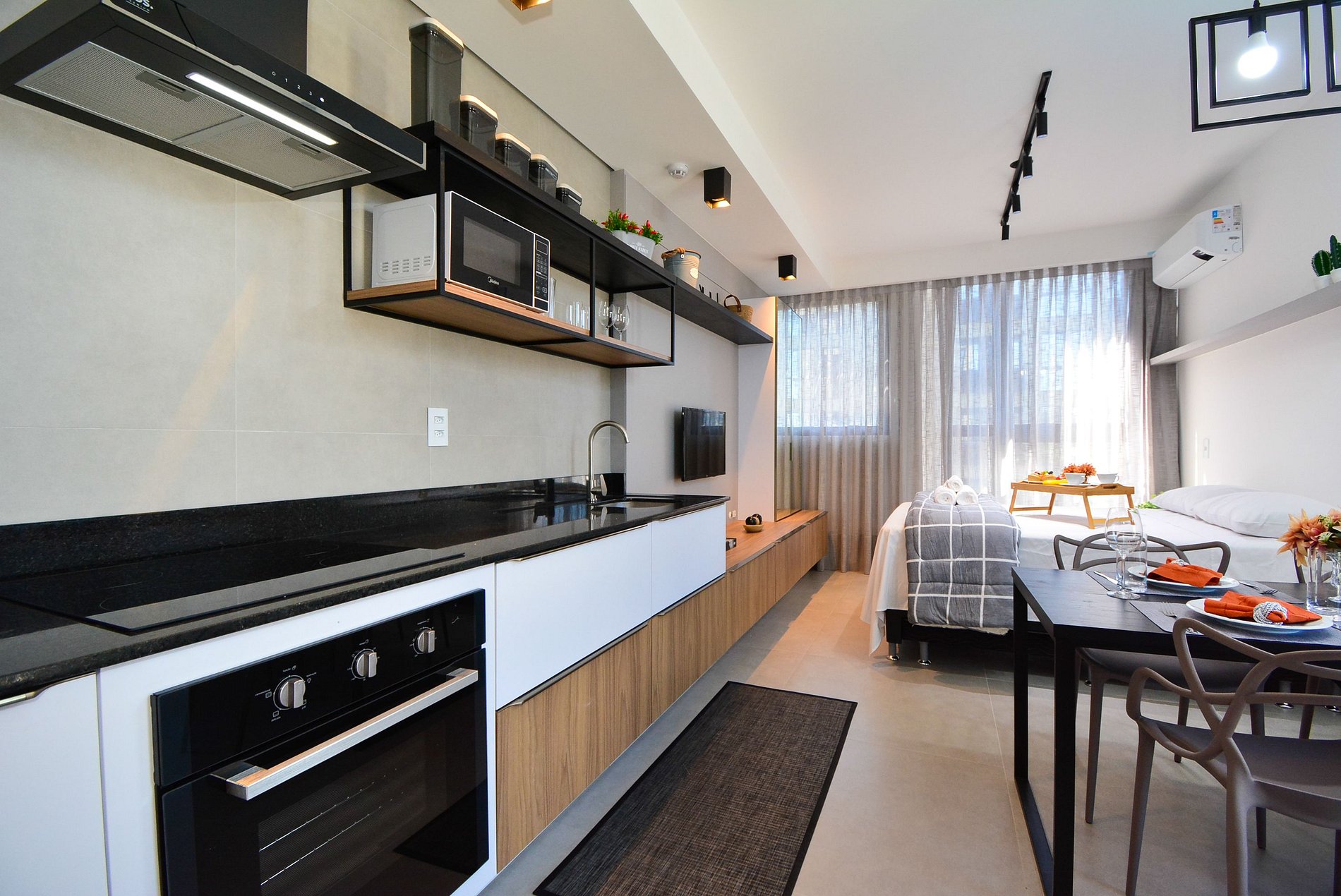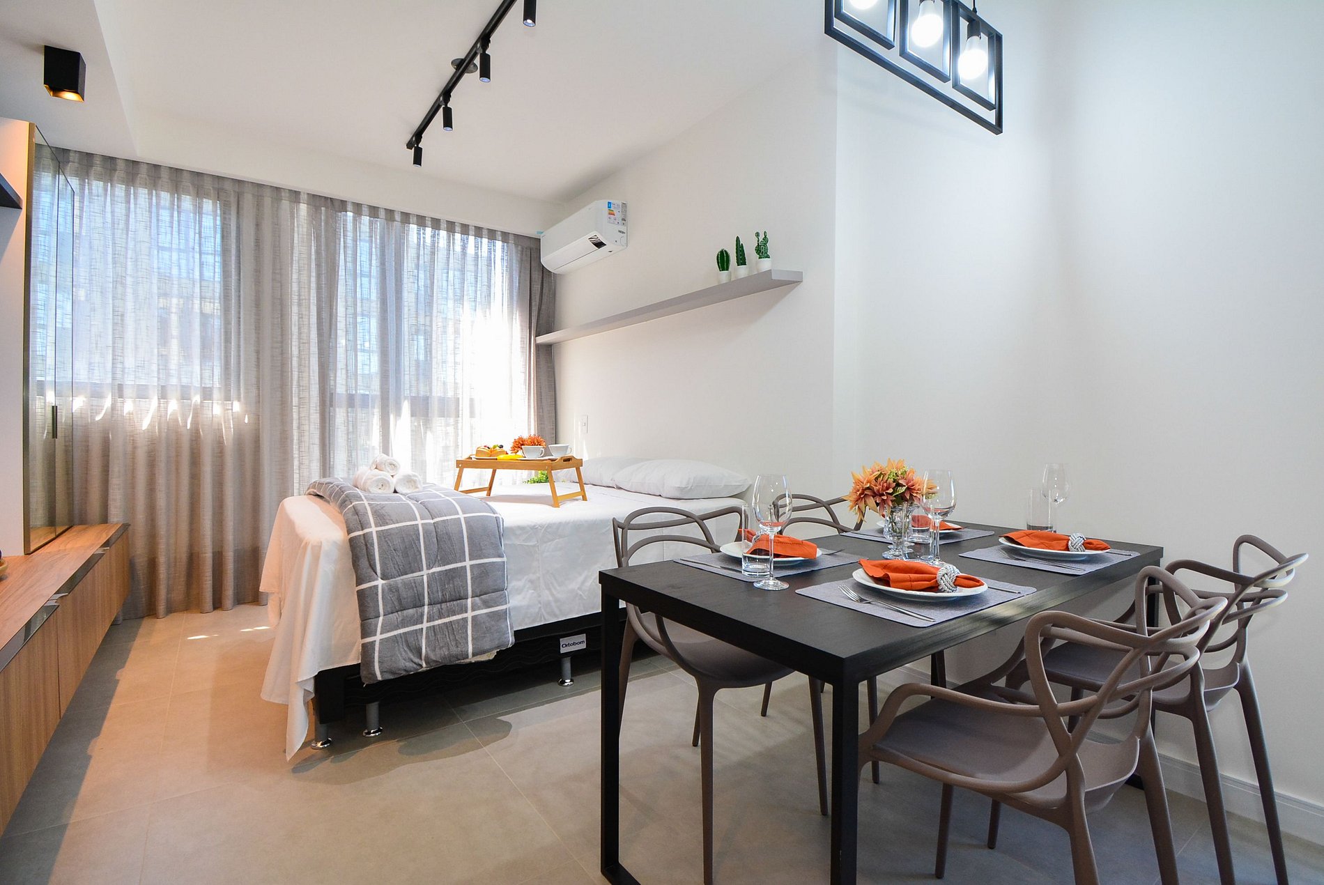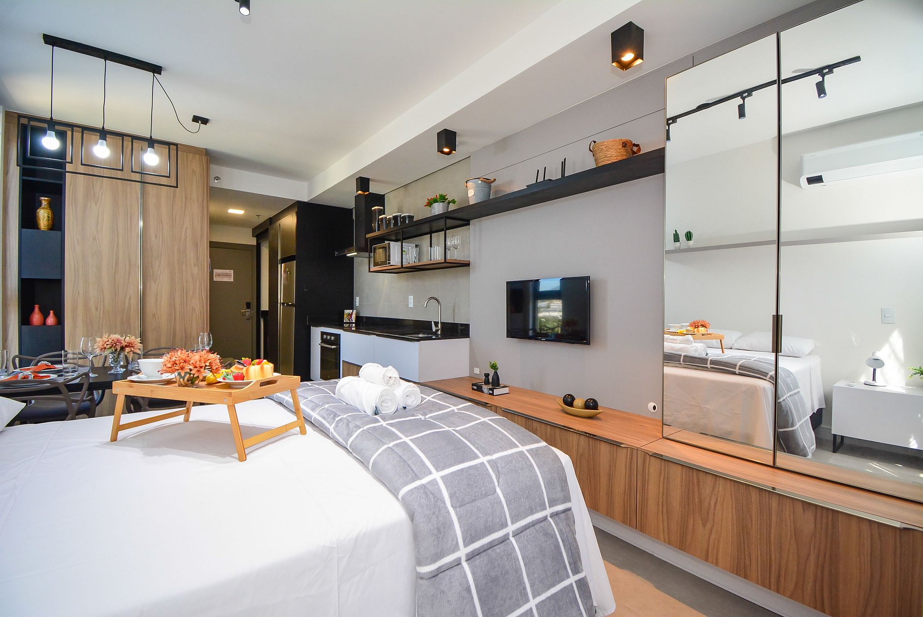 Com decoração acolhedora e bem planejada, este studio oferece uma estrutura completa para garantir uma estadia prática e confortável. Um espaço que une charme, funcionalidade e comodidade, ideal para quem busca se sentir em casa.
